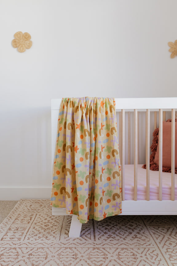 A celebration of imagination, Playtime Whimsy wraps your little one in a world of wonder. Crafted from a luxuriously soft blend of 70% bamboo and 30% cotton, this breathable muslin swaddle is gentle on delicate skin and perfect for cozy cuddles, dreamy naps, and everyday adventures.